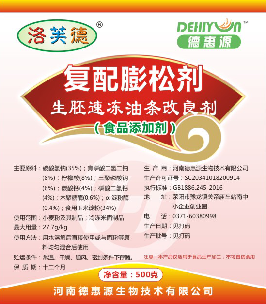 Dehuiyuan biotechnology is specialized in the production of food grade sodium polyacrylate, compound emulsifier, compound leavening agent, compound colorant, compound water retention thickener, compound acidity adjusting thickener, compound antioxidant, instant rice flour product improver, ramen softener, vermicelli improver (bright white and bright yellow), quick-frozen product improver, bean product improver (such as Yuba) and Jianjian Fruit product improver, cold drink stabilizer, etc.